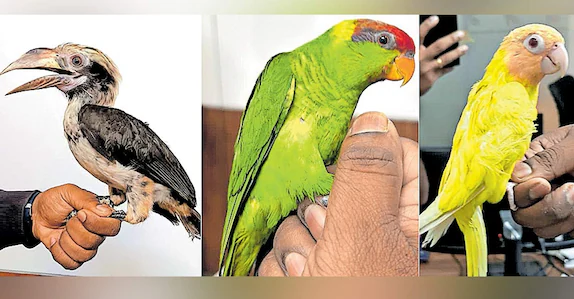 കുട്ടിയെ കരയിച്ചു, പക്ഷിക്കടത്തുകാർ വലയിൽ; പിടികൂടിയത് ലക്ഷങ്ങൾ വില മതിക്കുന്ന വിദേശ പക്ഷികളെ