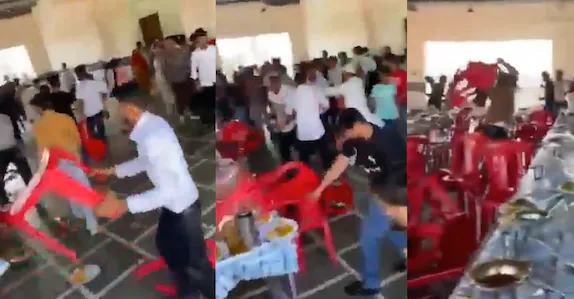 ഇതോടെ വരന്റെ കൂട്ടരും ആതിഥേയരായ വധുവിന്റെ കൂട്ടരും വിവാഹവേദിയിൽ ഭക്ഷണം വിളമ്പുന്ന സ്ഥലത്ത് ഏറ്റുമുട്ടി. പിന്നാലെ വരനൊപ്പം എത്തിയവർ വിവാഹസൽക്കാരം നടക്കുന്നയിടത്തെ കസേരകളും മേശകളും തല്ലിത്തകർത്തു. പൊലീസെത്തിയത് രംഗം ശാന്തമാക്കിയത്.