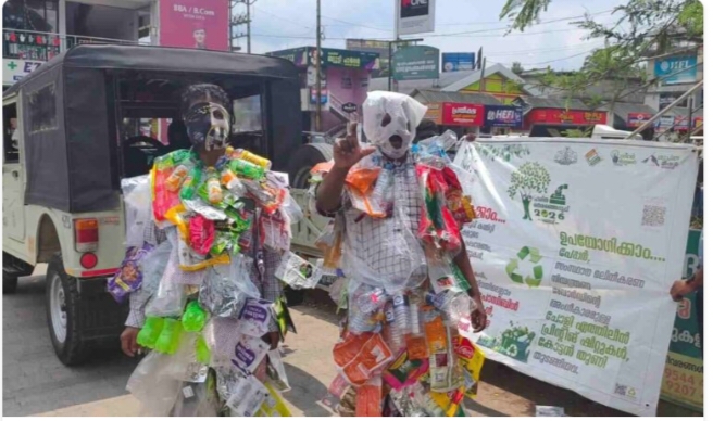 കൽപറ്റ:നിയമസഭാ തിരഞ്ഞെടുപ്പ് പൂർണമായും പരിസ്ഥിതി സൗഹൃദമാക്കുകയെന്ന ലക്ഷ്യത്തോടെ ജില്ലാ ശുചിത്വ മിഷന് ഒരുക്കിയ പ്ലാസ്റ്റിക് മാന് ശ്രദ്ധേയമാകുന്നു. പ്ലാസ്റ്റിക് ഉപയോഗത്തിന്റെ പ്രത്യാഘാതങ്ങളെക്കുറിച്ച് വോട്ടര്മാരിലും ഉദ്യോഗസ്ഥരിലും അവബോധം സൃഷ്ടിക്കാനാണ് വേറിട്ട പ്രചാരണ പരിപാടി സംഘടിപ്പിച്ചത്. ഉപയോഗശൂന്യമായ പ്ലാസ്റ്റിക് കുപ്പികളും കവറുകളും ശരീരമാസകലം തുന്നിച്ചേര്ത്ത വസ്ത്രം ധരിച്ചാണ് പ്ലാസ്റ്റിക് മാന് ഹരിത സന്ദേശവുമായി പൊതുജനങ്ങള്ക്കിടയിലേക്ക് എത്തുന്നത്. ഓരോരുത്തരും പ്രകൃതിയിലേക്ക് തള്ളുന്ന പ്ലാസ്റ്റിക് മാലിന്യങ്ങള് എങ്ങനെയാണ് നമ്മുടെ ജീവിതത്തെയും പരിസ്ഥിതിയെയും വരിഞ്ഞുമുറുക്കുന്നത് എന്നതിന്റെ ജീവിക്കുന്ന പ്രതീകമായാണ് പ്ലാസ്റ്റിക് മാൻ.