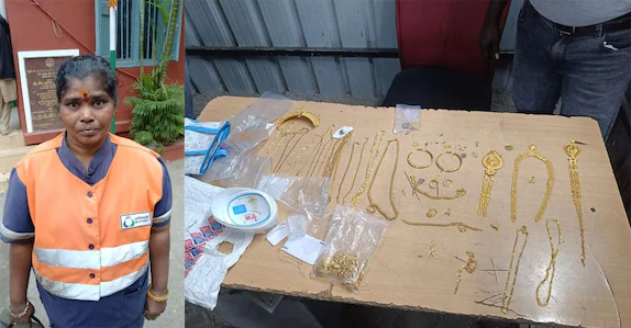 ചെന്നൈ ∙ ശുചീകരണ തൊഴിലാളിക്ക് റോഡരികിൽ കിടന്ന ബാഗിൽനിന്നും ലഭിച്ചത് 45 ലക്ഷം രൂപ വിലമതിക്കുന്ന 45 പവന്റെ സ്വർണാഭരണങ്ങൾ. പതിവുപോലെ ടി നഗറിൽ ശുചീകരണ പ്രവൃത്തി ചെയ്യുമ്പോഴാണ് പത്മ റോഡരികിൽ ഉപേക്ഷിച്ച നിലയിൽ ബാഗ് കണ്ടത്. ബാഗ് തുറന്നു നോക്കിയപ്പോഴാണ് നിറയെ സ്വർണാഭരണങ്ങൾ കണ്ടത്. ഒട്ടും സമയം കളയാതെ ബാഗുമായി സമീപത്തെ പോണ്ടിബസാർ പൊലീസ് സ്റ്റേഷനിലെത്തി പത്മ സ്വർണം കൈമാറി.