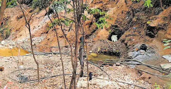 ഇവിടെ നിന്നു ശേഖരിക്കുന്ന മണ്ണും കല്ലും അരച്ചുകൊടുക്കുന്നതിനായി ഈ ഭാഗത്ത് ചിലർ മില്ലും സ്ഥാപിച്ചു. വനംവകുപ്പ് പരിശോധന ശക്തമാക്കിയതോടെ ഖനനം നിർത്തലാക്കിയിരുന്നു. ഇത്തരം അനധികൃത തുരങ്കങ്ങളിൽ പെട്ട് ഒട്ടേറെ പേരാണ് ഇവിടെ മരിച്ചത്. പല മരണങ്ങളും പുറംലോകം അറിയാതെ പോയിട്ടുമുണ്ട്. തുരങ്കങ്ങളിൽ നിന്നു മണ്ണ് എടുക്കുമ്പോൾ മണ്ണ് ഇടിഞ്ഞും പ്രാണ വായു കിട്ടാതെയുമാണ് പലരും മരിച്ചത്. തുരങ്കങ്ങളിൽ നിന്നു മണ്ണ് ശേഖരിക്കുന്നതിനിറങ്ങുന്നവരിൽ ഏറെയും യുവാക്കളാണ്. 80 അടി മുതൽ 200 അടി വരെ തുരങ്കം നിർമിച്ചാണ് മണ്ണ് ശേഖരണം. ഇവിടെ നിന്നു ശേഖരിക്കുന്ന മണ്ണും കല്ലും അരച്ച് മെർക്കുറി ഒഴിച്ച് സ്വർണം വേർതിരിക്കും. ഇവിടത്തെ നീർച്ചാലുകളിൽ വലിയതോതിൽ മെർക്കുറി കലരുന്നതായി കണ്ടെത്തിയിട്ടുണ്ടെന്നു വനംവകുപ്പ് ഉദ്യോഗസ്ഥർ പറയുന്നു.
